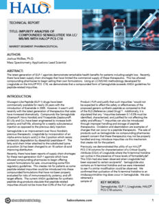 - HALO Peptide also allows for a higher sample load on column for basic analytes and could potentially help pull apart closely retained impurities as seen in the graphs.