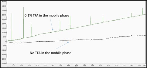 Figure 4: Baseline drift from acidic modifiers in the mobile phase