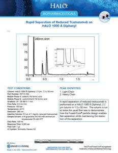 HALO® BIOCLASS protein columns include the 1000 Å Fused-Core® particle, enabling the benefit of unrestricted pore access. These columns combine the power of ultrafast and high-resolution separations to the biologics workflow.