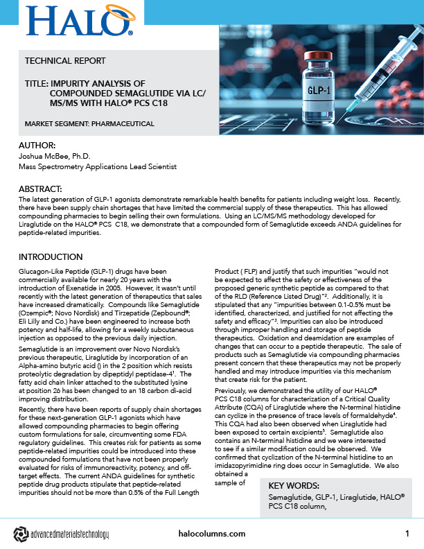 Impurity Analysis of Compounded Semaglutide via LC/MS with HALO® PCS C18